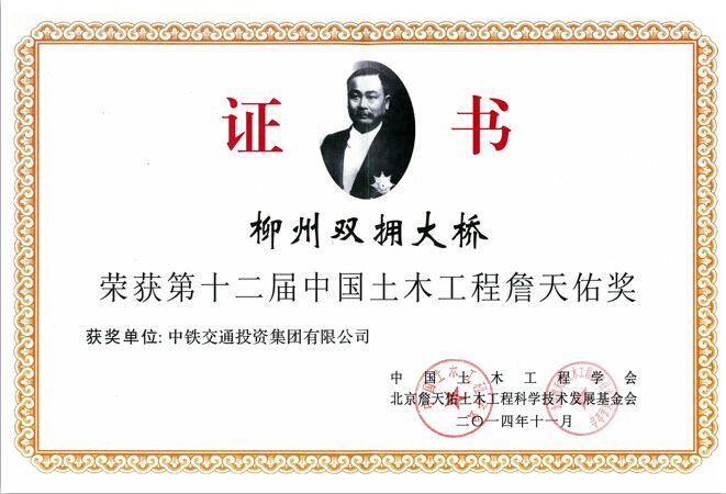 廣西柳州雙擁大橋榮獲中國土木工程詹天佑獎