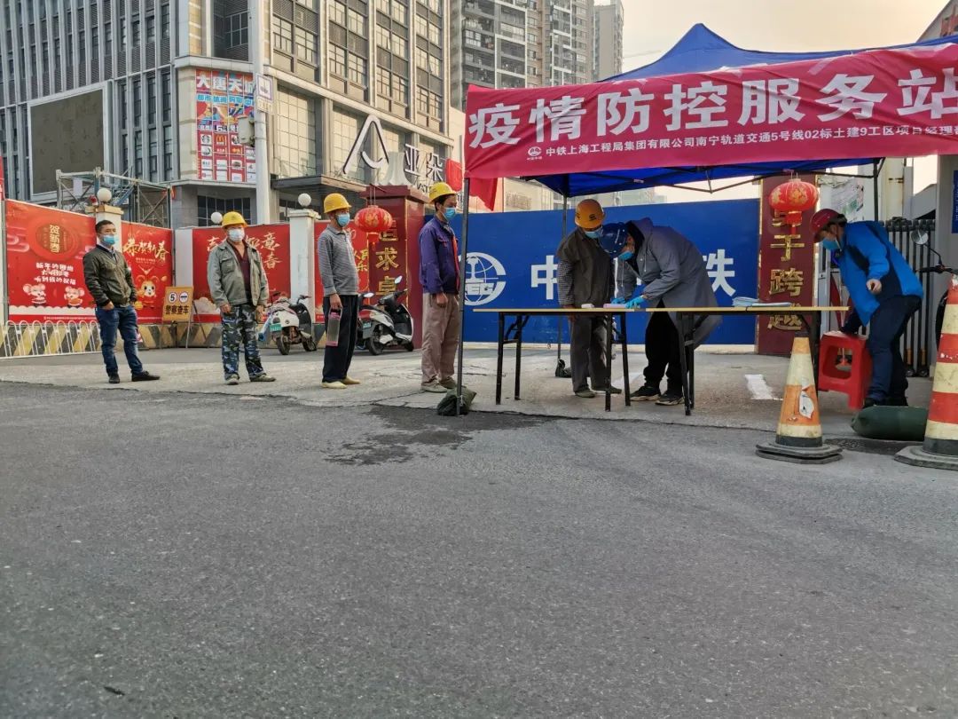 各參建單位工區(qū)迅速與南寧市住建局對接,通過“桂建通”系統(tǒng)將承諾書、自查表、防控方案向南寧市住建局報備,截止到2月25日,所有工區(qū)均完成資料上傳工作并獲得復(fù)工告知書。