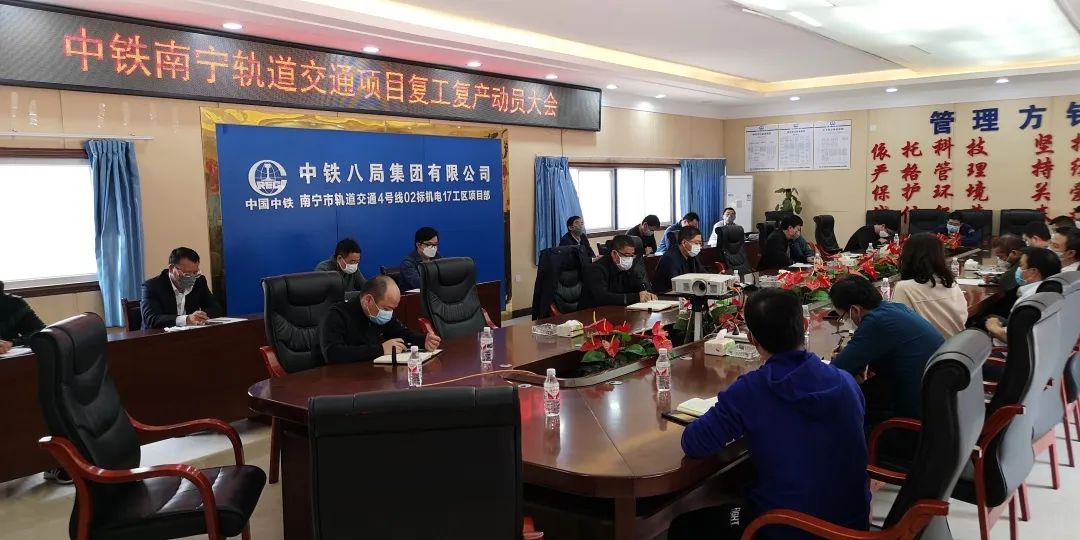 2月24日,南寧地鐵項目召開復(fù)工復(fù)產(chǎn)動員會,對地鐵4號線、5號線02標(biāo)復(fù)工復(fù)產(chǎn)工作進(jìn)行再部署再動員,并提出下一步工作相關(guān)要求。