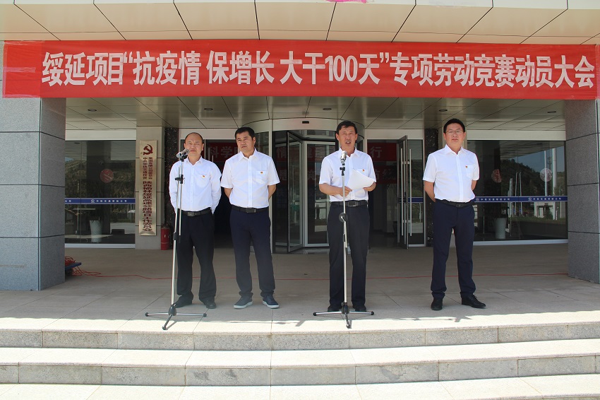 6月2日下午,綏延項(xiàng)目黨政工團(tuán)召開(kāi)“抗疫情、保增長(zhǎng),大干100天”專項(xiàng)勞動(dòng)競(jìng)賽動(dòng)員大會(huì),領(lǐng)導(dǎo)班子成員、各部門、各單位共計(jì)50余人參加。