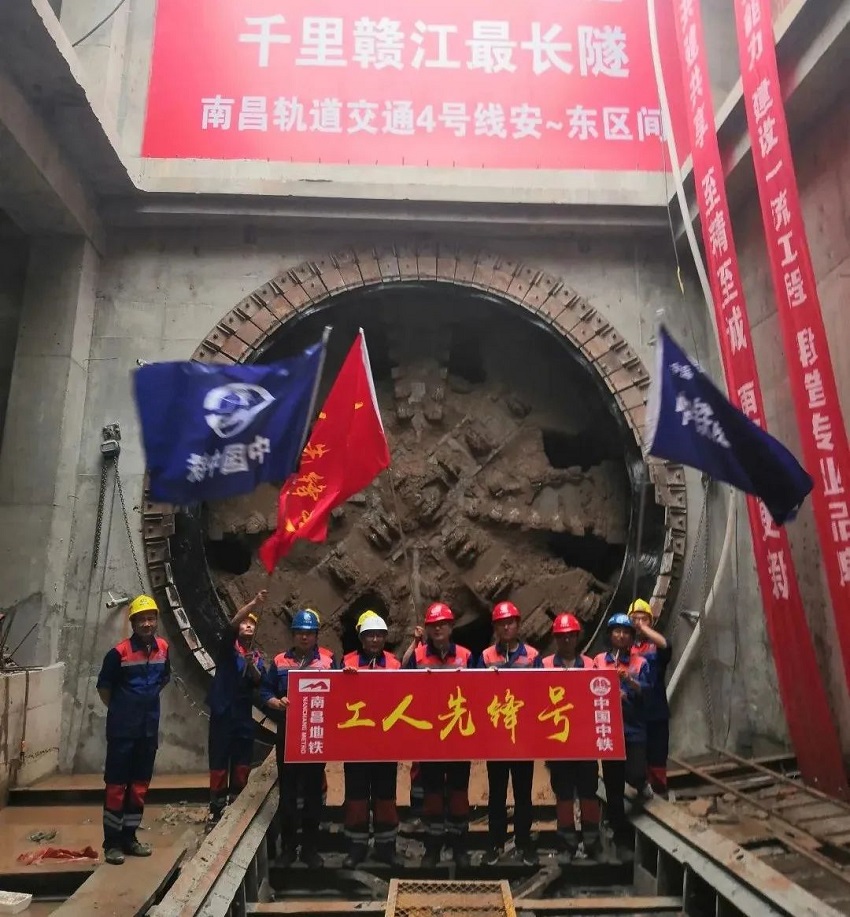 6月10日,南昌地鐵4號線02標東新站至安豐站區間(右線)盾構機順利穿越贛江并在安豐站接收,標志著贛江江底最長隧道順利貫通。