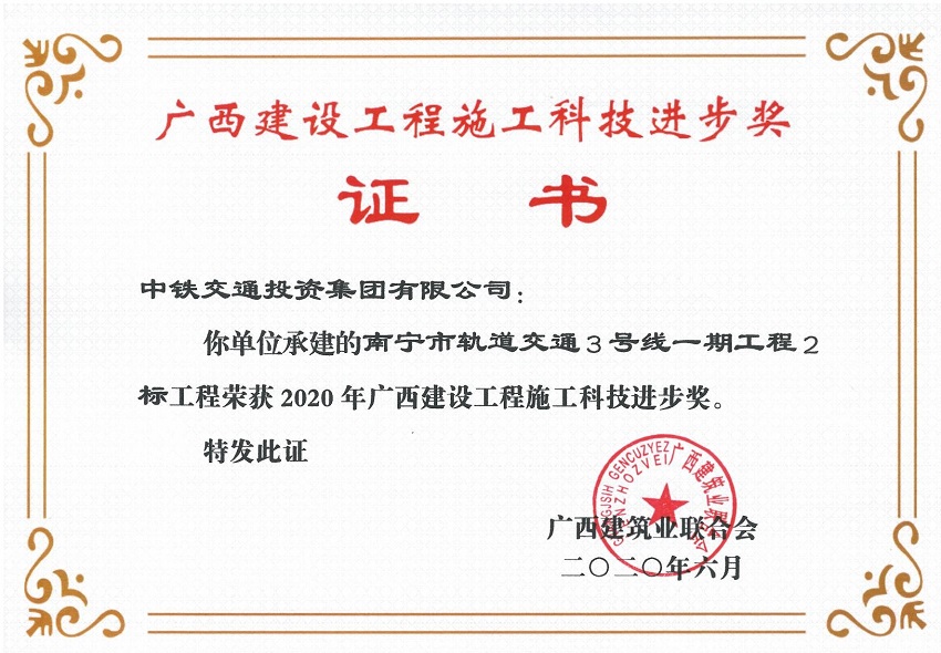 南寧市軌道交通3號線02標項目榮獲廣西建筑工程最高質量獎及科技進步獎,充分表明項目質量及施工技術達到廣西區內領先水平,這是中鐵交通的榮譽,更是中國中鐵的榮譽,是“安全第一,質量為本,環保至上,職業健康”的企業生產文化成果的集中體現。