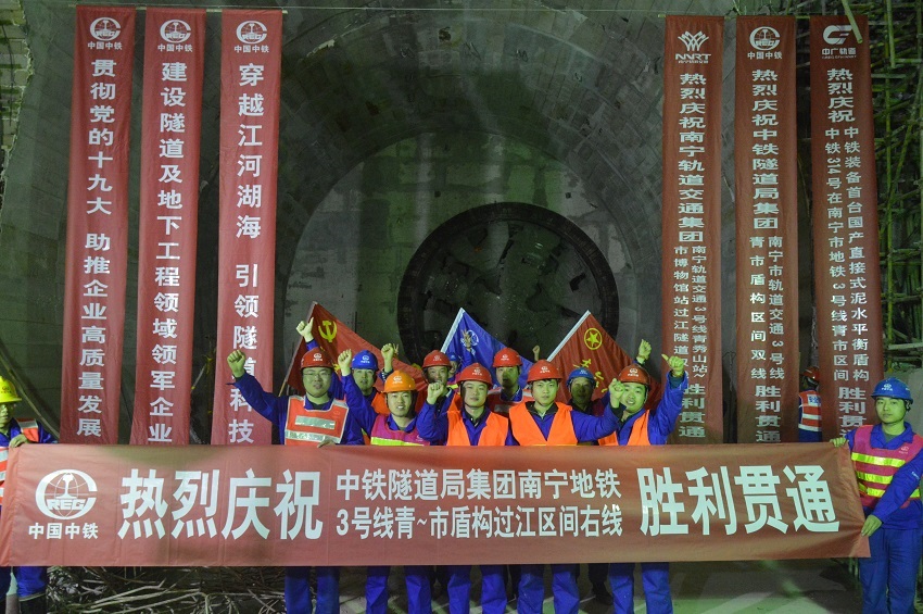 ▲青秀山站至市博物館站盾構過江左線隧道貫通