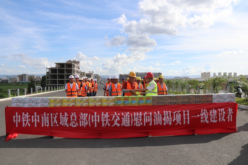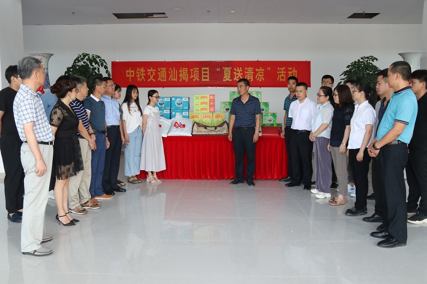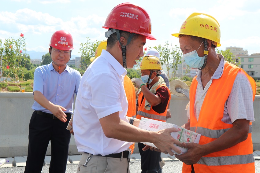 7月,集團公司副總經(jīng)理劉寧到汕揭項目為在高溫地區(qū)作業(yè)的一線建設(shè)者送清涼,將飽含關(guān)懷的清涼用品遞給每一位一線建設(shè)者,并仔細了解、問候他們的工作生活情況。
