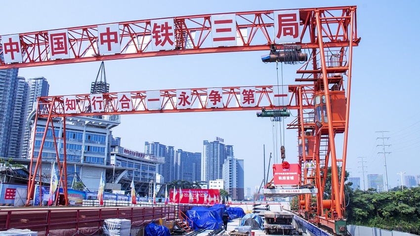 9月1日10時(shí)10分,在南寧地鐵5號(hào)線02標(biāo)工程機(jī)電9工區(qū)金橋客運(yùn)站鋪軌基地,軌道首鋪儀式現(xiàn)場(chǎng)彩旗飄揚(yáng),隨著“開始鋪軌”一聲令下,一節(jié)25m軌排被龍門吊穩(wěn)穩(wěn)吊起,緩緩下降安放至隧道內(nèi),標(biāo)志著南寧地鐵5號(hào)線02標(biāo)工程正式進(jìn)入鋪軌大干熱潮。