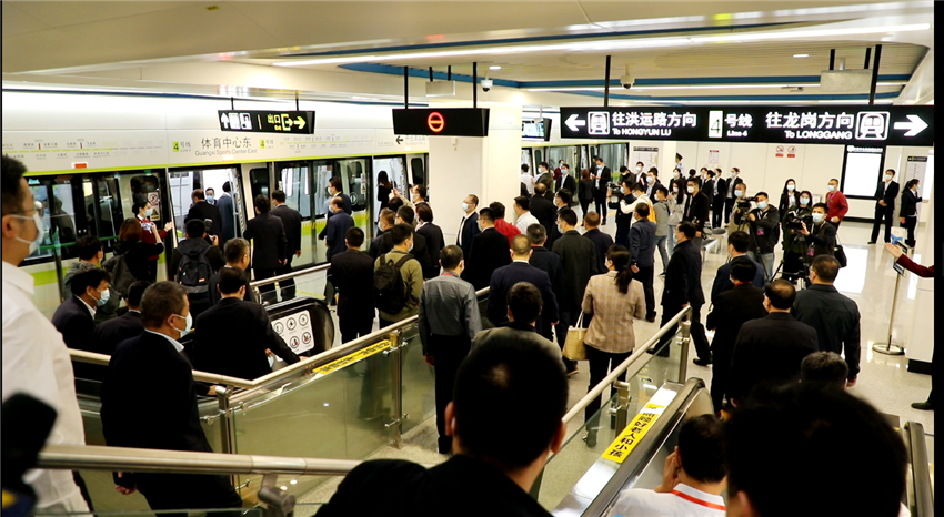 上午9時15分,通車儀式在南寧地鐵4號線體育中心東站舉行,中鐵中南區域總部(中鐵交通)總經理譚世俊,中鐵中南區域總部(中鐵交通)副總經理陳戈,中鐵廣西軌道交通指揮部、中鐵各參建單位建設者參加儀式并見證開通。