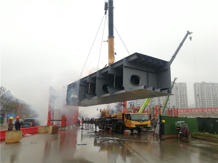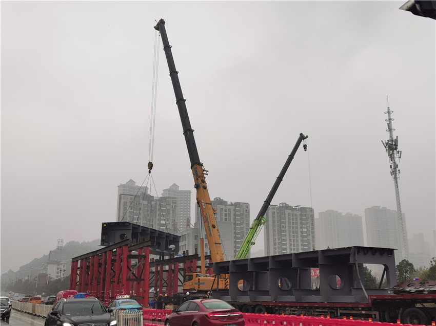 華星路立交橋全長158米,橋?qū)?5米,共需架設(shè)鋼箱梁88片,梁重25噸,采用兩臺220噸吊車吊裝架設(shè)。華星路立交橋建成后將成為婁底市首座立交橋,成為婁底交通史上的新地標,為搭建立體交通體系、滿足東南部快捷通行需求、完善區(qū)域路網(wǎng)起到關(guān)鍵性作用,對推動沿線資源開發(fā)、促進產(chǎn)業(yè)發(fā)展、基礎(chǔ)設(shè)施建設(shè)具有重要意義。