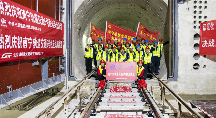 12月24日上午10時10分,最后一節鋼軌在廣西大學站右線小里程端YK22+034處順利合攏,標志著南寧地鐵5號線全線短軌通目標提前7天實現,由中國中鐵總包、中鐵交通代管、中鐵三局承建的南寧地鐵5號線02標雙線鋪軌主體已全部完成,為后續南寧地鐵5號線建設奠定了堅實基礎。