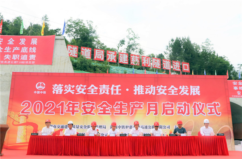 6月1日,爐慈桑龍項(xiàng)目聯(lián)合湖南省交通建設(shè)質(zhì)量安全監(jiān)督管理局在爐慈高速慈利隧道進(jìn)口舉辦“安全生產(chǎn)月”活動(dòng)啟動(dòng)儀式,中鐵交通(中鐵中南區(qū)域總部)副總經(jīng)理、中鐵中南區(qū)域(湖南)總部指揮長(zhǎng)、項(xiàng)目公司總經(jīng)理黨世偉出席儀式并作動(dòng)員講話。