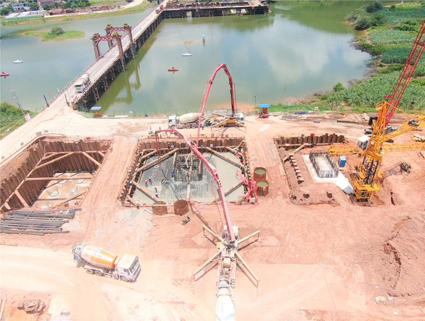 7月10日,南橫項目沙坪河特大橋16#墩中承臺混凝土澆筑完成,7月14日,17#墩左輻承臺混凝土澆筑完成,標志著南橫項目沙坪河特大橋施工進入了一個新的施工階段,為接下來沙坪河特大橋主塔施工做好了必要準備。