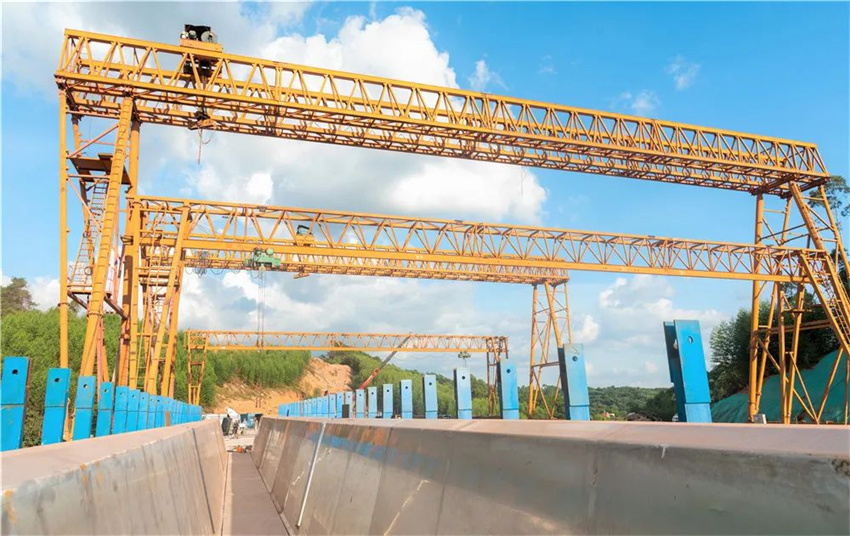 截至10月底,南橫項目預制梁場總面積約246731㎡,已預制41片箱梁,配置20臺提梁門吊,占總數57%;存梁臺座90個,占總數42%;制梁臺座199個,占總數65%;配32套箱梁模板,占總數42%。