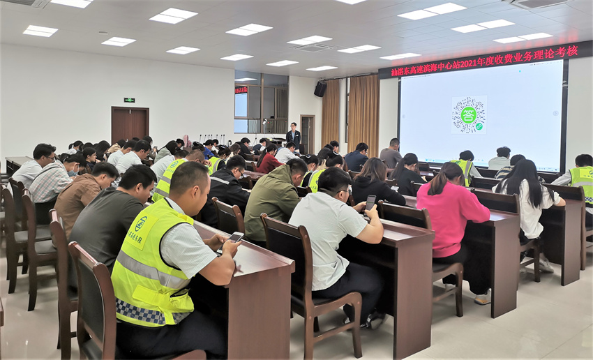 為進一步提高收費人員業(yè)務(wù)水平,11月上旬,汕揭項目組織開展了收費業(yè)務(wù)理論考核,考核利用“題答答”手機小程序,題目來自廣東省收費員業(yè)務(wù)技能競賽題庫,現(xiàn)場共101人參加考核,其中15名收費員獲得滿分。