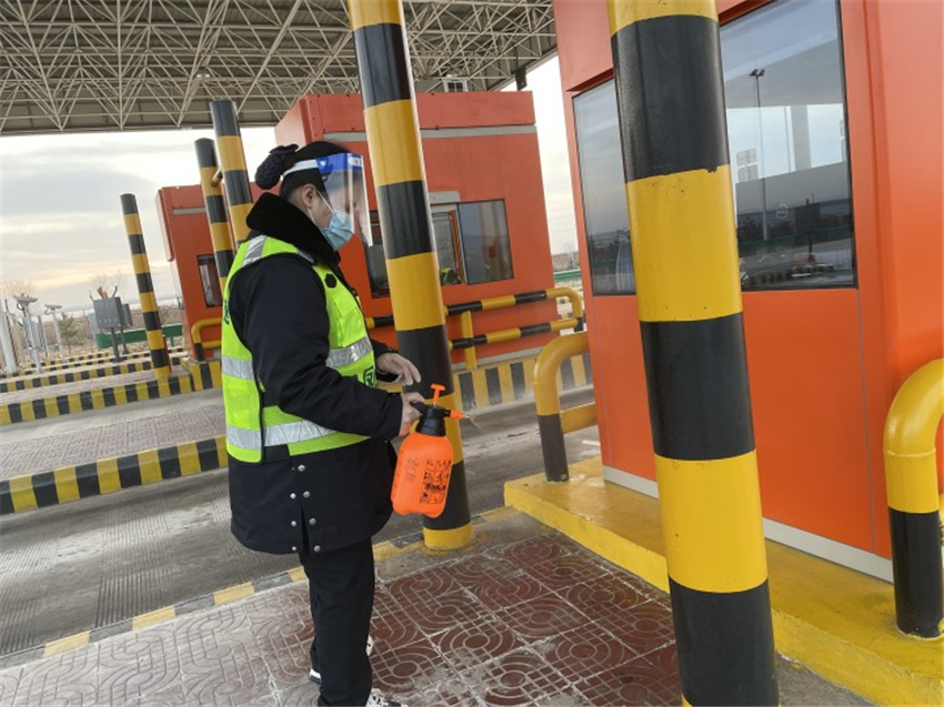 面對春運期間車流大幅增加、疫情防控形勢嚴峻等情況,綏延項目繃緊“安全保通”和“疫情防控”兩根弦,及時對公共區域、CPC卡通行介質及現金進行消毒,加強所屬站所進出管控,全力以赴打響春運保暢戰。