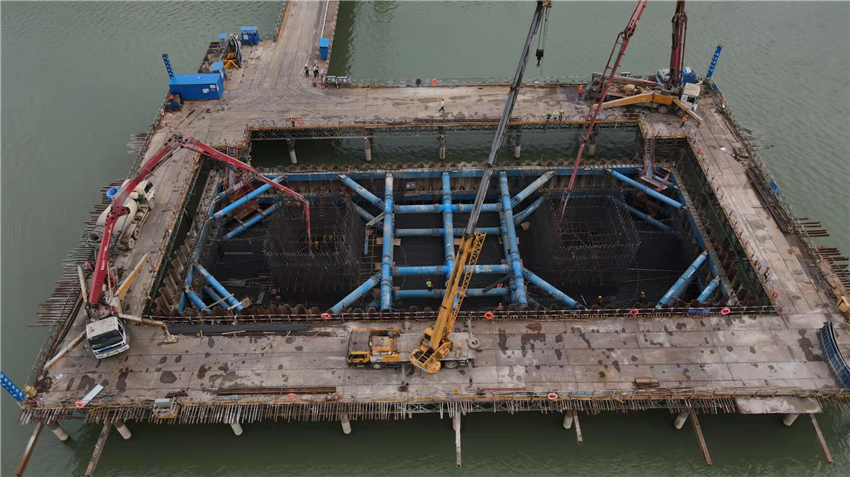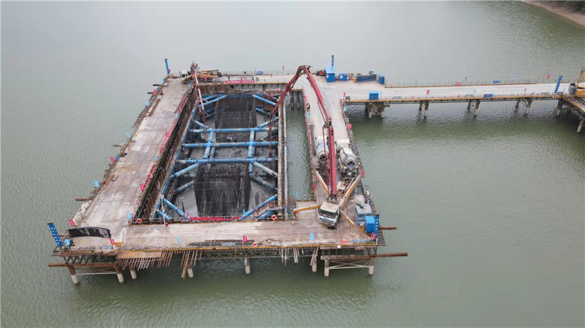 3月21日,經(jīng)過連續(xù)30個(gè)小時(shí)的澆筑,項(xiàng)目重點(diǎn)控制性工程西津郁江特大橋首個(gè)最大體積水中承臺(tái)澆筑完成,標(biāo)志著西津郁江特大橋即將轉(zhuǎn)入技術(shù)施工含量更高的主塔施工階段。