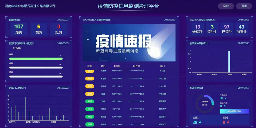 爐慈桑龍項(xiàng)目嚴(yán)格落實(shí)各項(xiàng)疫情防控舉措,積極引入疫情防控信息監(jiān)測管理平臺(tái),對(duì)參建單位管理人員、勞務(wù)作業(yè)人員、常駐工地門衛(wèi)、工地小賣店等3000多人全面覆蓋,實(shí)現(xiàn)縱向貫通、橫向覆蓋,用“數(shù)智防疫”賦能項(xiàng)目生產(chǎn)經(jīng)營,為項(xiàng)目投資建設(shè)管理和職工生命健康安全筑牢了“科技長城”。