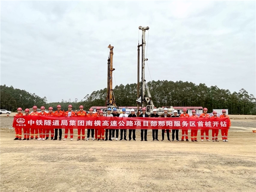▲那陽服務(wù)區(qū)首樁開鉆施工